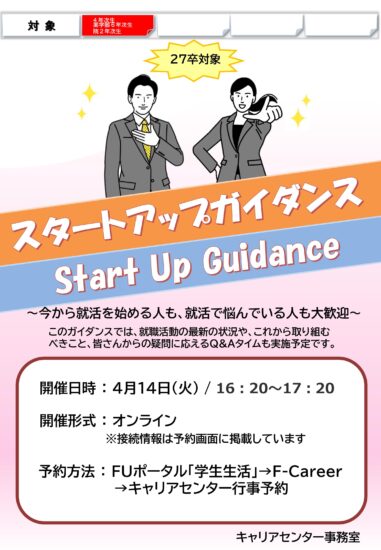 5月16日(土)に「学内OB・OG交流会」を開催します。卒業生から直接、仕事のやりがいや本音を聞くことは、皆さんにとって貴重な経験になります。「働くとは?」「どんな企業があるの?」「就職活動って?」というギモンを先輩と一緒に話していきましょ...