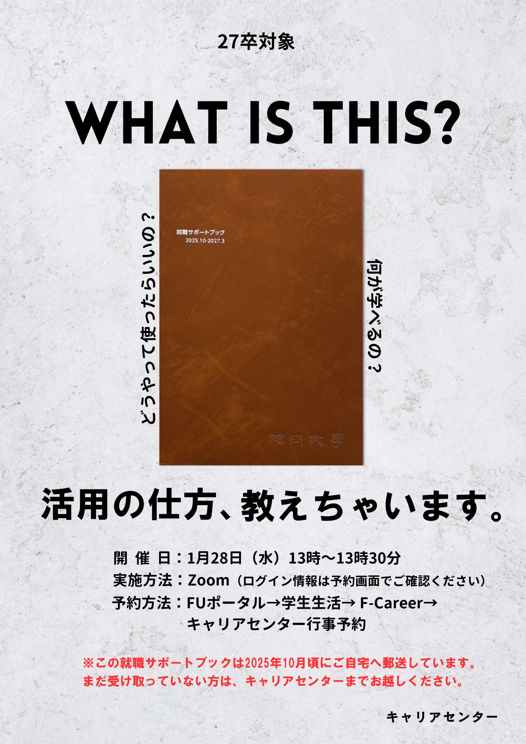 このミニセミナーでは、就職サポートブックをどのように活用できるかをお話しますので、ぜひご参加ください。