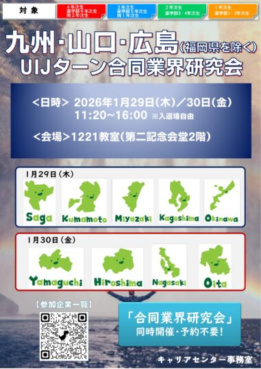学生の皆さんへ キャリアセンターでは、学生の皆さんが早い時期から企業を知り、インターンシップに向けた業界研究ができるよう「ジョブフェス」を開催します。 就職活動の早期化やオンライン化など就職活動を取り巻く環境が大きく変化する中で、インターン...